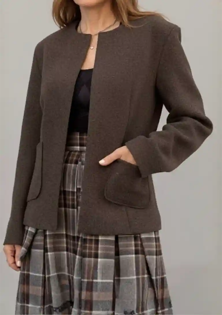 The Ciao Giulia is a minimalist masterpiece designed for makers who value both form and function. This collarless, “great little jacket” features a relaxed yet tailored silhouette, brought to life with a modern side-panel construction and unique tilted pockets that add a sophisticated edge to its clean lines.